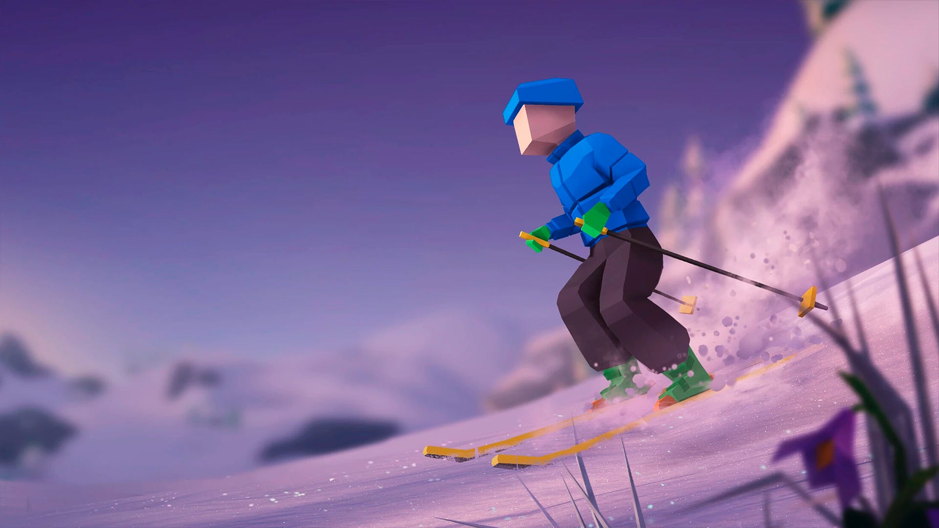 No tengo experiencia de primera mano con el esquí – como sí la tenía haciendo rutas de ciclismo cuando analicé el anterior título de Megagon Industries – pero, como mínimo, puedo decir que Lonely Mountains: Snow Riders se siente extraordinariamente realista. El título trabaja de una manera muy concreta, muy meticulosa, todas las sensaciones de la experiencia de descubrir, bajar y, en última instancia, terminar una pista. Desde el sonido de la nieve bajo los esquís hasta el tacto, la resistencia (o no) de cada terreno a la hora de deslizarnos. El hielo resbaladizo, las partes del suelo por las que ya hemos pasado haciéndonos ir un poco más rápido. Siendo un juego con una estética cartoon y más bien romantizada, que el juego no escatime nunca en detalles que nos pongan en situación nos hace entrar de lleno en la propuesta. En la vida real, no sabría ni siquiera cómo ponerme unos esquís; en el mundo del juego, podría daros clases magistrales.