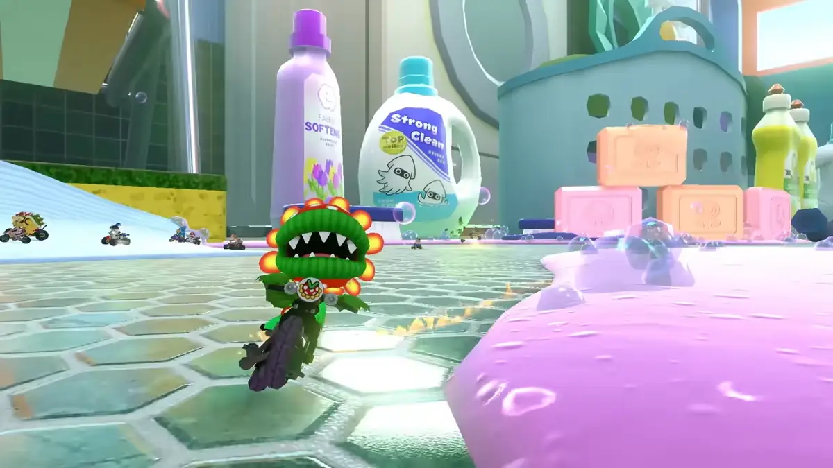 La Copa Pluma incluirá el mapa Atenas de Altura de Mario Kart Tour, Crucero Daisy de Mario Kart Double Dash (GameCube), el Circuito Luz de Luna de Mario Kart Wii, y una pista totalmente nueva, el Escusado Acelerado, inspirada en un baño.