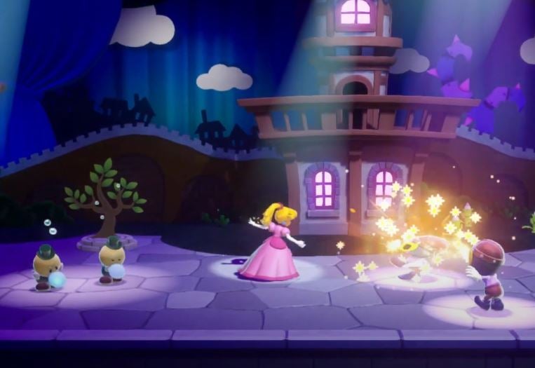 Lo que se ha mostrado ha sido sólo un clip de unos segundos en los que veíamos a Peach tras un telón, y después moviéndose y luchando contra enemigos en lo que parece el decorado de una obra de teatro. La locución también mencionaba algo sobre un «escenario», así que es posible que esta sea la temática del juego.